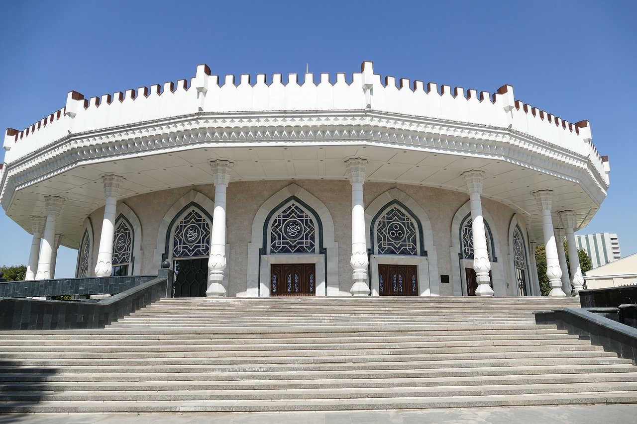 Tashkent, visit Monument of Courage (1969), Romanov Prince Duke Residence, Opera and Ballet Theatre named after Alisher Navoi (outside only), Memorial of Repressions Victims with the traditional ornaments, Tashkent TV Tower (outside only)